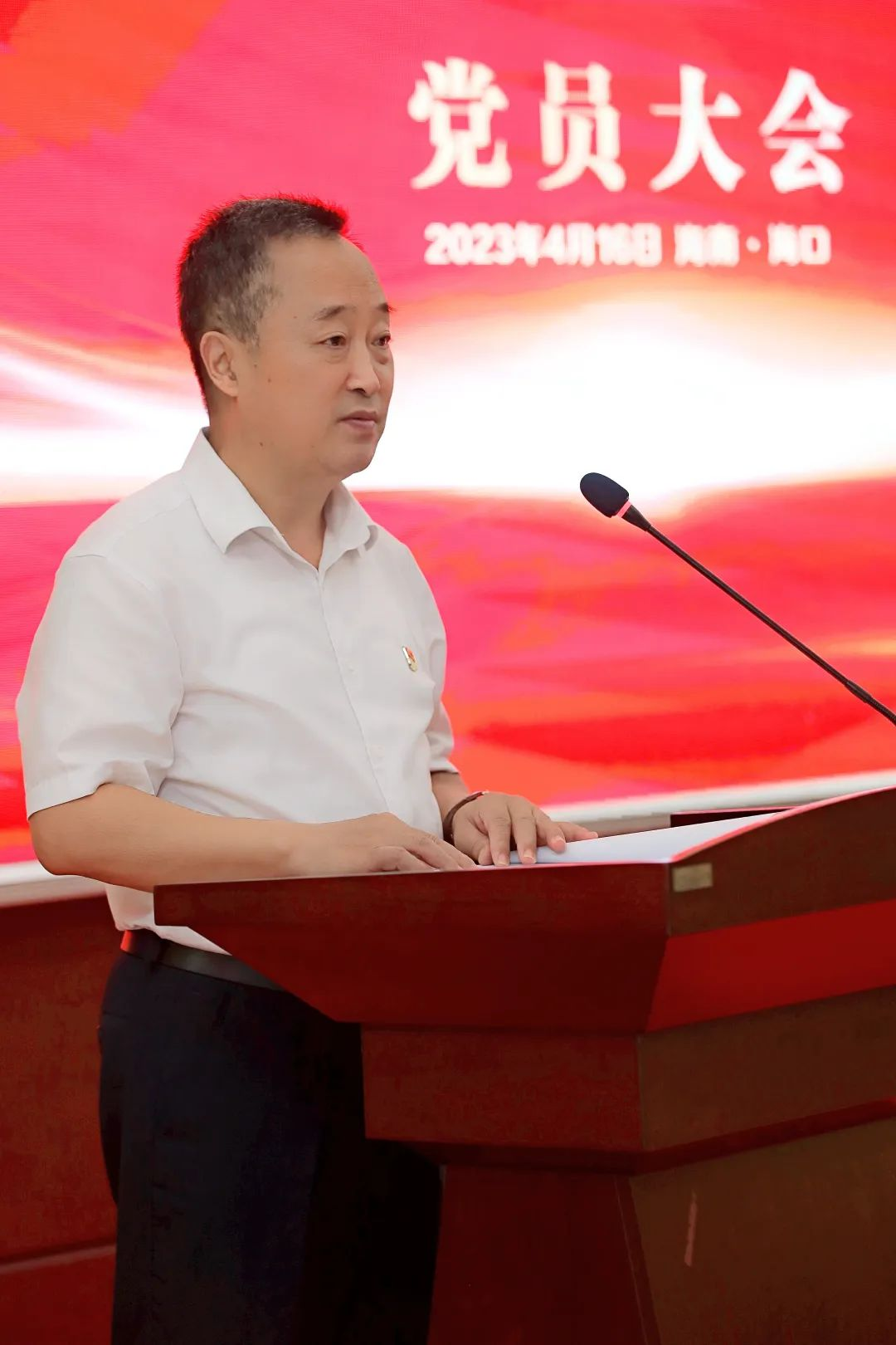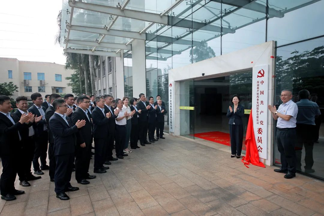 海口市高新区两新组织党委副书记傅爱萍宣读了《中共海口国家高新区非公有制经济组织和社会组织委员会关于同意成立中国共产党海南40001百老汇药业集团股份有限公司委员会的批复》。